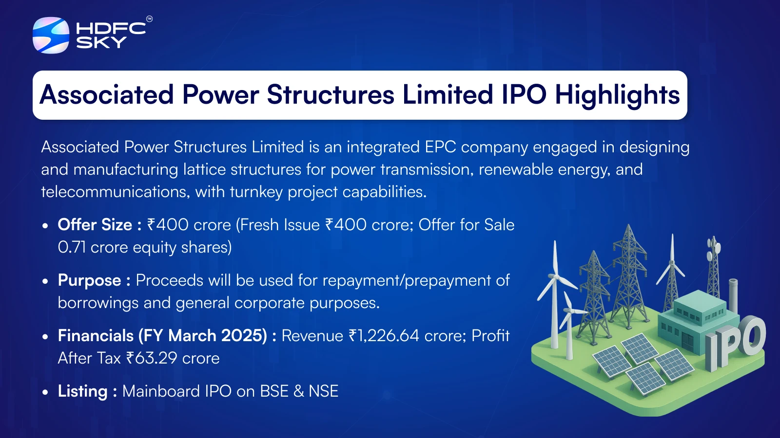 Associated Power Structures Ltd. filed its Draft Red Herring Prospectus (DRHP) with SEBI on September 27, 2025, aiming to raise funds through an Initial Public Offering (IPO). The company plans a Book Building Issue, which includes a fresh issue worth ₹400.00 crore along with an Offer for Sale (OFS) of up to 0.71 crore equity shares. The equity shares are proposed to be listed on both the NSE and BSE. While the book running lead manager is yet to be appointed, MUFG Intime India Pvt. Ltd. will act as the registrar of the issue. Key details such as IPO dates, price bands, and lot size are yet to be announced.