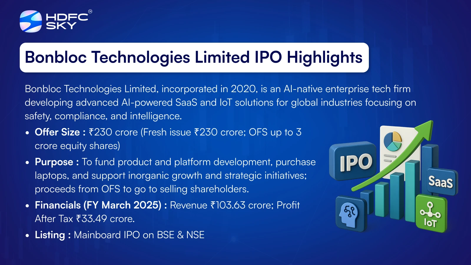 Bonbloc Technologies Limited plans to raise funds through a ₹230 crore fresh issue and an Offer for Sale of 3 crore shares.