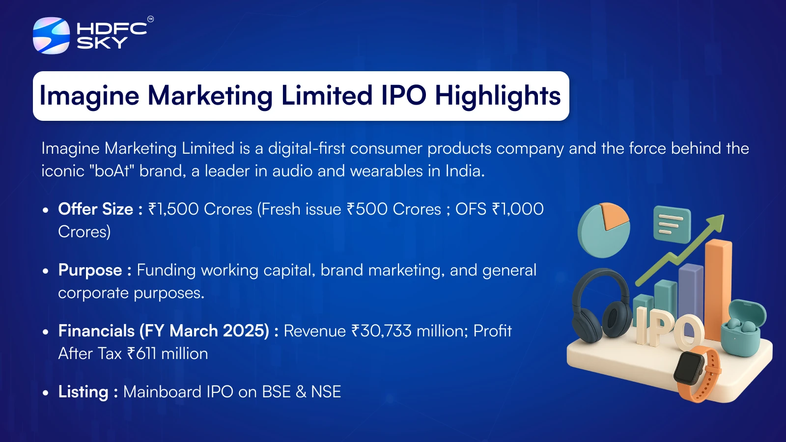 Imagine Marketing Limited is a digital-first pioneer that has reshaped India’s consumer electronics landscape with its flagship brand, “boAt”. Founded in 2013, the company is laser-focused on serving the needs of young, trend-conscious Indians with a portfolio of lifestyle-oriented audio products, wearables, and accessories.