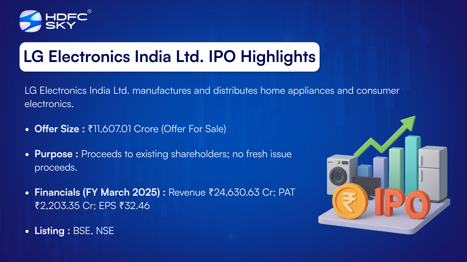 Since the IPO is an Offer-for-Sale (OFS), LG Electronics India will not receive any funds. The entire amount raised will go to the selling shareholder, not the company.