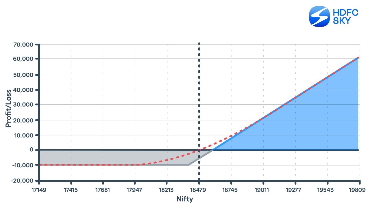 The investment involved in this strategy revolves around the contract lot size (in the case of indices – Nifty & Bank Nifty, the lot size is 50 and 25, respectively, while for individual stocks it varies) and the losses are limited to the premium paid while entering the trade. Earnings potentials are immense as on a given day, they can rise in multiples. However, the trader runs the risk of losing the entire premium if the trade is left uncovered. Let’s dwell in detail and understand how.