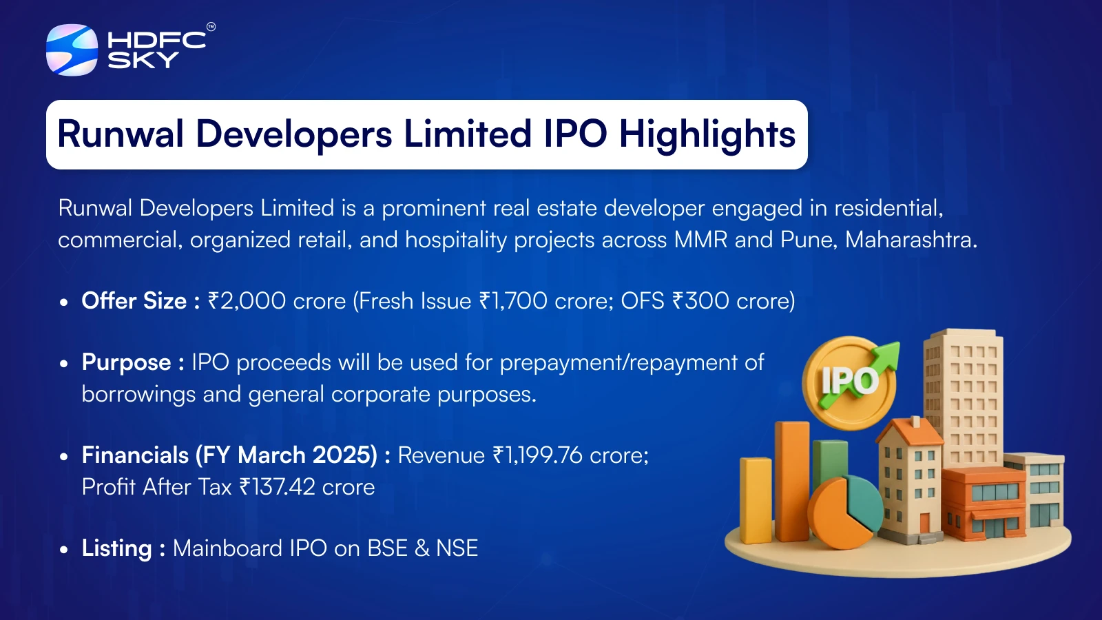 Runwal Developers IPO is a book-built public offering to raise ₹2,000 crore through fresh issue and OFS.