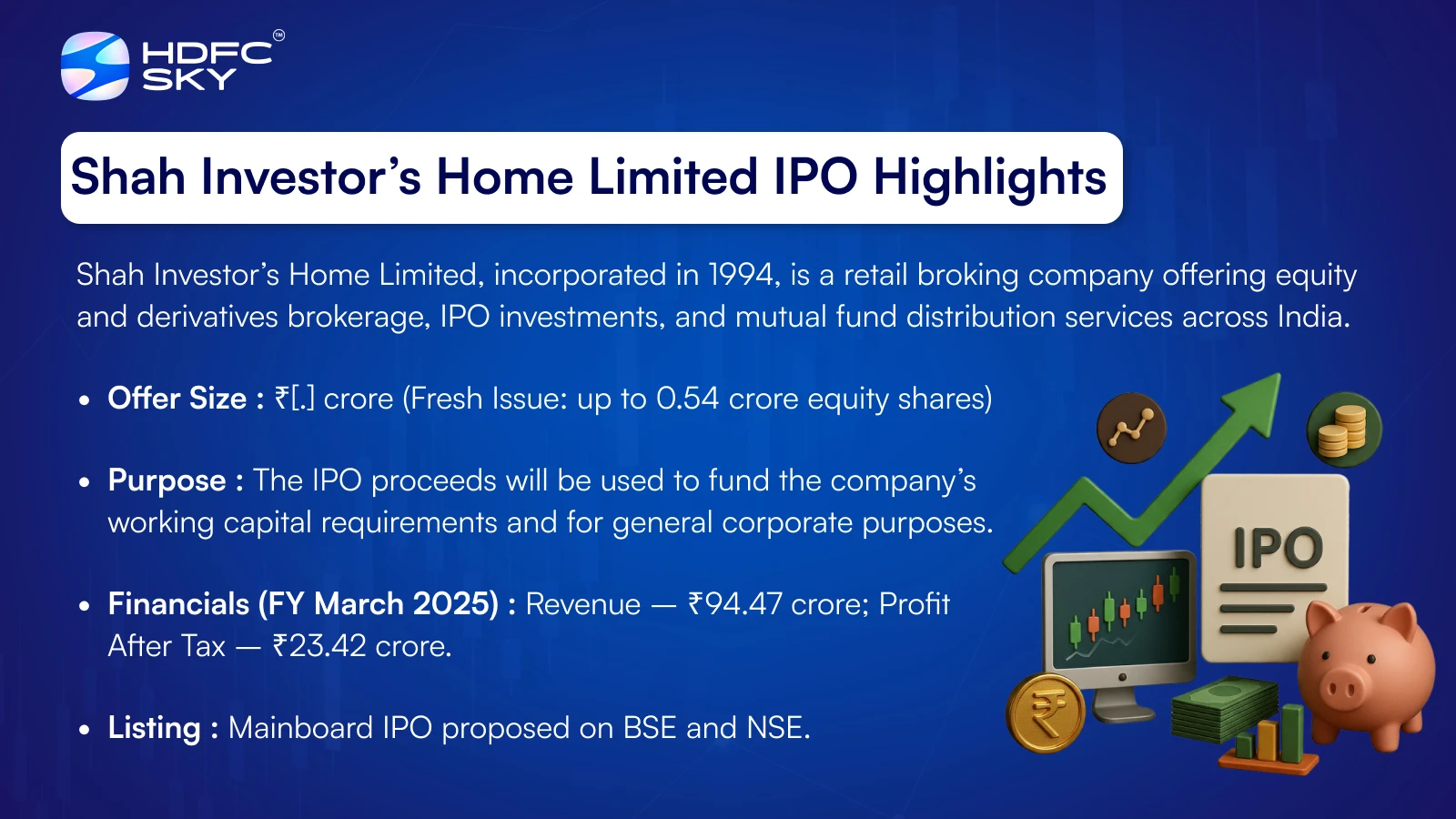 Shah Investor’s Home Ltd. filed its Draft Red Herring Prospectus (DRHP) with SEBI on September 29, 2025, proposing to raise funds through an Initial Public Offer (IPO). The IPO will be a Book-Build Issue consisting entirely of a fresh issue of up to 0.54 crore equity shares. The company’s equity shares are proposed to be listed on both the NSE and BSE. Beeline Broking Ltd. will act as the book-running lead manager, while MUFG Intime India Pvt. Ltd. will serve as the registrar of the issue. Details such as IPO dates, price band, and lot size are yet to be announced. Investors can refer to the Shah Investor’s Home IPO DRHP for complete information.