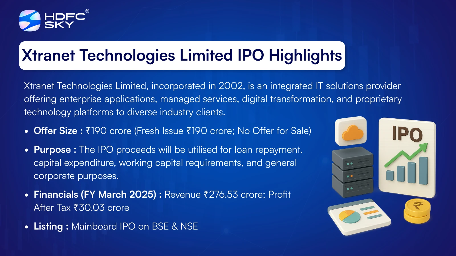 Xtranet Technologies Ltd. filed its Draft Red Herring Prospectus (DRHP) with the Securities and Exchange Board of India (SEBI) on September 25, 2025, marking a key step towards its proposed Initial Public Offering (IPO). The company’s promoters include Sukhbir Singh Kukreja, Jogendrapal Singh Alagh, and Shiney Sukhbir, who have played a central role in the organisation’s growth and strategic direction. As per the DRHP, the promoter shareholding before the IPO stands at 83.63%, which is expected to reduce post-issue once the fresh equity shares are allotted to new investors. The filing of the DRHP signifies Xtranet Technologies’ intent to strengthen its financial base, enhance visibility in the public markets, and fund its future business expansion plans.