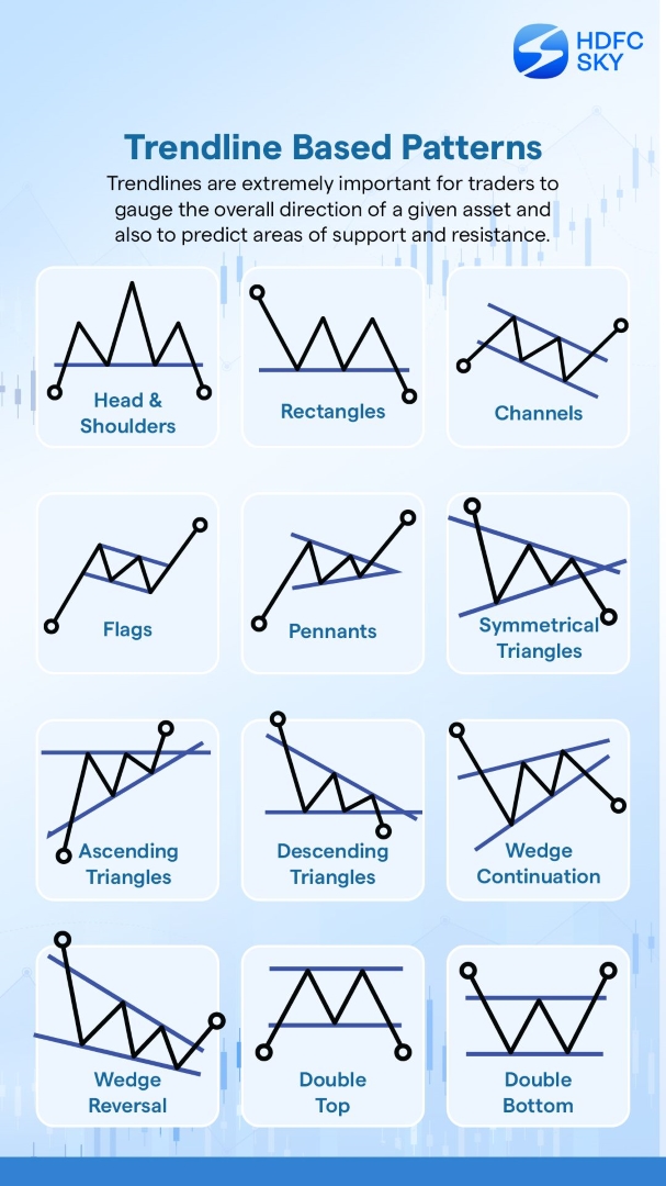 Trendline-based patterns use trendlines to identify potential price movements and reversals in the market. These patterns help traders make informed decisions.